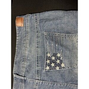 * Details: American flag back pockets, rhinestone accents, classic 5-pocket design