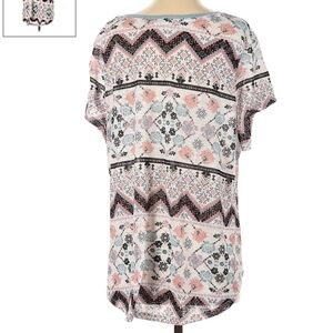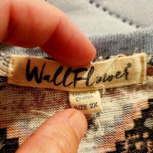 Wallflower Pocket Tee Women’s Plus Size 2X Ringer Neck Floral Chevron Print EUC