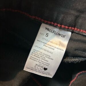 Chic black jeans by Wallflower. Features bold red stitching. Perfect for any occasion.