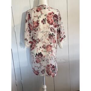 Wallflower Size Small 3/4 Sleeve Sheer Open Front Cardigan Cream Floral
