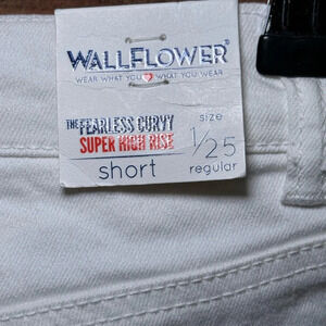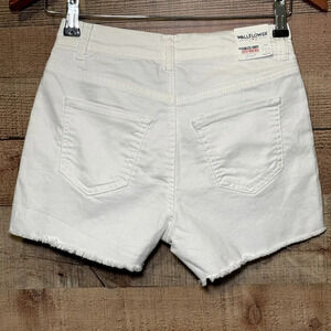 NWT Wallflower-The Fearless Curvy Super High Rise white denim frayed raw hem shorts in a juniors size 1.