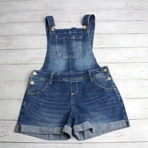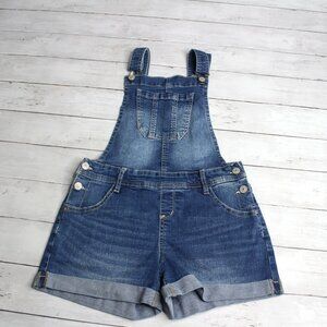 Wallflower Women's Denim Blue Jean Bib Overall Shorts Size S Junior