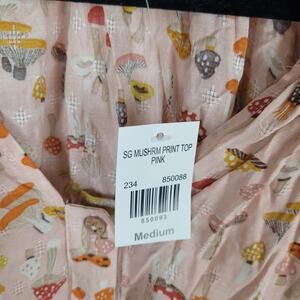 Wallflower Womens Medium Pink Mushroom Print Peasant Blouse NWT Boho Cottagecore