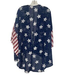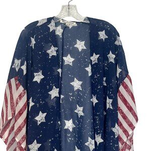 Wallflower Womens Star & Stripes Kimono Cardigan Patriotic Blue Size Medium