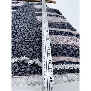 Wallflower Women's Stripe Floral Tank Blouse L Round Neck Sleeveless Lace Trim