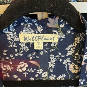 Wallflower navy/white/pink floral print open drone 3/4 sleeve kimono size S