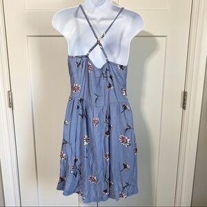Wallflower spaghetti strap criss cross back blue floral dress size Medium