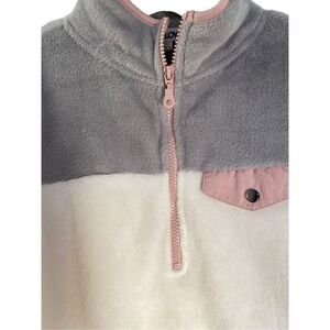 Wallflower women’s 1/4 zip fleece pull over top, pink and gray size small