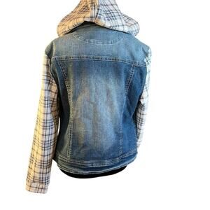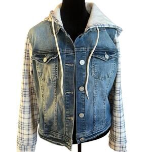 Wallflower women’s M denim jacket with sweatshirt hood and sleeves