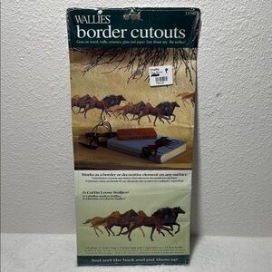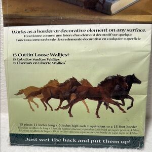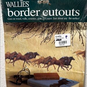 Wallies border cutouts featuring a horse design. Perfect for decorating walls, ceramics, glass, and paper. New in unopened package.