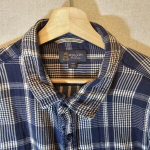 Wallin & Bros Blue White Plaid Double Layer Button-up Mens long sleeves Size XXL