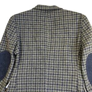 Size: 38 Short Classic tailored blazer or sports coat made from 100% wool tweed fabric (mid-weight) Color: grey/navy/charcoal - plaid/checkered Single breasted, two button closure Small shoulder pads Buttoned cuffs Two black slits Elbow patches Navy elbow patches Fully lined Flap pockets (seamed in) Flat-lay measurements: Pit to pit: 19.5” Shoulders: 19.5” Hips; 19.5” Length: 27.5” Sleeve: little over 23” Pre-owned in gently used and great condition, no flaws. Open to questions, offers are welcome. Gentleman englishman academia equestrian business casual country club office careerwear elegant tweed blazer