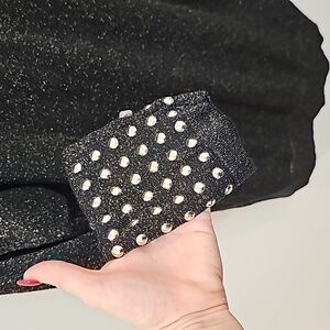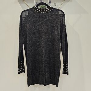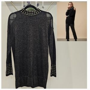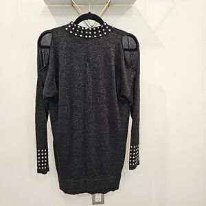 Wallis Black Gold Studded Cold Shoulder Mock Neck Tunic Sweater Top Size Medium