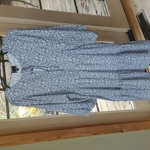 Wallpapher Blue Floral Tired Gathered Slv Sz. XXL Dress