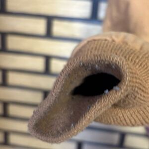 This is in very fair condition. Has several marks/spots/stains. It has a few spots on sleeve where it looks like it’s been stamped. It has pilling around sleeves. It has been well loved but still has wear.
