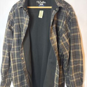 Walls Workwear Mens Large Plaid Lined Thick Cotton Flannel Shirt Jacket Chore