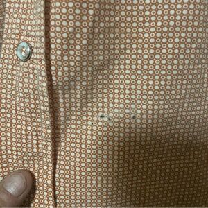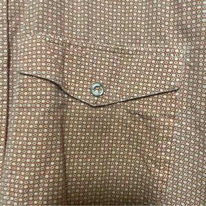 This Walls men's shirt in size XL features a classic Western style with a plaid pattern in orange and white. It has long sleeves, a collared neckline, and pearl snap closures. Made from cotton, this shirt is suitable for travel, casual wear, or work. It is machine washable and designed for a regular fit, perfect for various seasons.