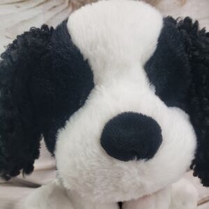 This adorable black and white plush stuffed animal is perfect for all occasions. With its cute dog design, this 12-inch toy is sure to delight kids and adults alike. Made by Walmart and retired from production, this stuffed animal is a must-have addition to any collection.