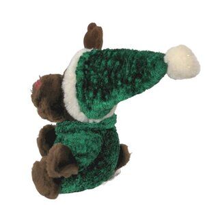 Walmart Brown Christmas Reindeer Green Suit Hat Plush Stuffed Animal 7.5"