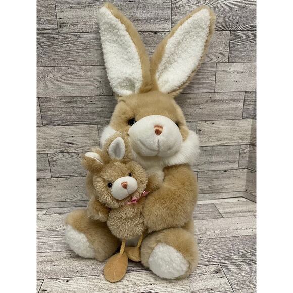Walmart Bunny Rabbit Holding Baby Plush Stuffed Animal with Floppy Ears Lt Brown.