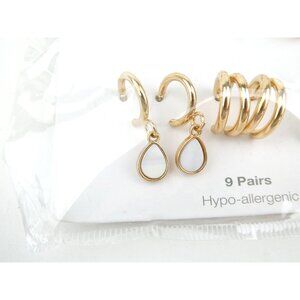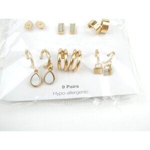 Walmart Earring Set 9 Pairs Gold-Tone Hypo-Allergenic in new condition.