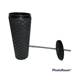 Walmart Textured Tumbler Cup Reusable 26 oz Matte Black Screw Top Lid w/Straw