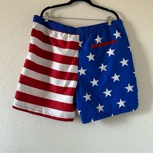 Walnut & 39th American Flag Swim Truck Board Shorts Men Size XL NWOT/ elastic waist with drawstring/ red white blue / has pockets