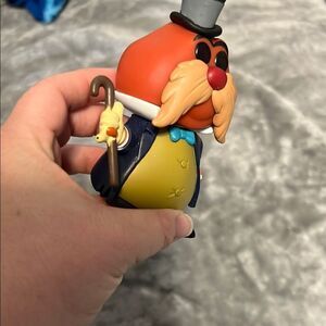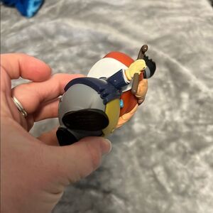 Vibrant cartoon character figure with a yellow vest and blue jacket. Features a red face and black hat. Perfect for collectors.