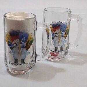 Walt Disney 4 Parks Glass Souvenir Beer Mugs Bundle of 2 Vintage