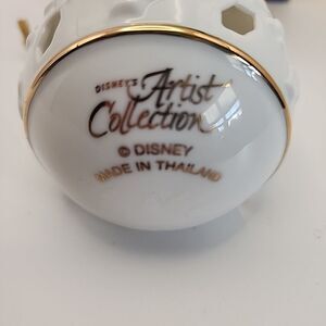 The Walt Disney Artist Collection Christmas Ornament featuring Donald Duck, Daisy, and Snowball is a vintage piece made of porcelain. This Disney collectible, manufactured in Thailand, captures the beloved characters in a festive holiday ornament. Perfect for Disney fans and collectors, this ornament brings a touch of nostalgia and magic to any Christmas tree.