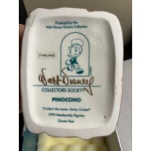 Released in 1993 as a membership figurine, this piece captures the beloved character from Pinocchio with exquisite detail. This figurine is a delightful representation of Jiminy Cricket, showcasing his cheerful personality and iconic appearance. Perfect for Disney enthusiasts and collectors alike, this piece is sure to bring joy and nostalgia to any display. This is a vintage item in pristine condition, part of Disney history.