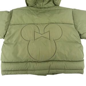 Walt Disney Collection Puffer Jacket Green Minnie Mouse Quilted Hooded Zip And Snap Closure Warm Snow Winter Coat