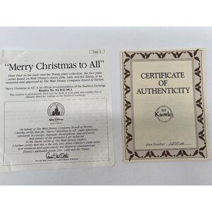 A meticulously crafted limited-edition collector's plate featuring the beloved canine characters from Walt Disney's classic animated film. This carefully designed piece captures a heartwarming Christmas scene with intricate details and rare pigments, making it a prized addition for Disney memorabilia enthusiasts.