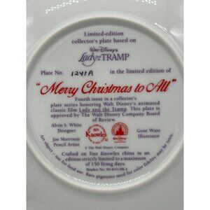 Walt Disney Lady And The Tramp Merry Christmas Collectible Plate Limited Edition