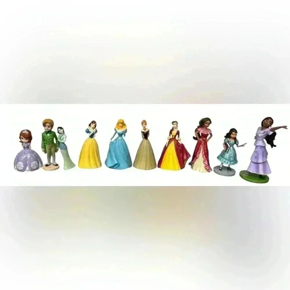 Set of 10 Walt Disney characters. Set includes: Princess Sofia & James, Mulan, Snow White, Sleeping Beauty, Anna, Belle, Elena and Isabel and Isabella. Figures are about 3”-3.5.” Each one is in good, clean condition. Smoke free home
