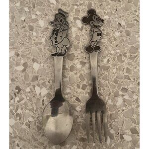 Walt Disney Mickey Mouse & Donald Duck Childrens Fork and Spoon Japan Light Wear