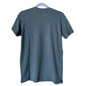 This t-shirt features beloved Disney characters including Mickey Mouse, Goofy, Donald Duck, and Pluto. The shirt is a size small and made of heavy cotton material that is machine washable. The gray color and solid pattern make it a versatile addition to any wardrobe.