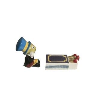 Spice up your kitchen with these rare Walt Disney Pinocchio Jiminy Cricket and MatchBox salt and pepper shakers. These collectibles are perfect for any Disney fan and add a touch of whimsy to your dining table. Made in China and featuring the iconic Jiminy Cricket character, these shakers are a must-have for any Disneyana collector. Whether you're using them for a special occasion or just to add some fun to your everyday meals, these shakers are sure to bring a smile to your face. Measurements photographed. See pictures, please. Ships quickly