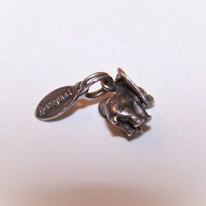 From Disneyland, here's a souvenir sterling silver (hallmarked as pictured) 3D charm depicting Baby Dumbo the Elephant. The charm has a terrific strike - you can see all the details of Dumbo both back and front. Original hang tag is present stating the piece is (C) Walt Disney Productions. When buying Disney charms, look for the best strike possible - over the years the makers reused the molds over and over again. The more the mold was used, the less definition a charm had!