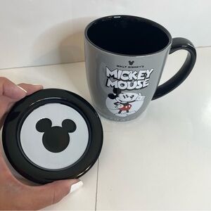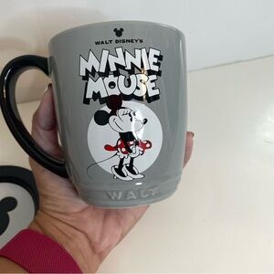 Walt Disney Studios Gray Ceramic Minnie & Mickey Mouse Coffee Tea Mug & Coaster
