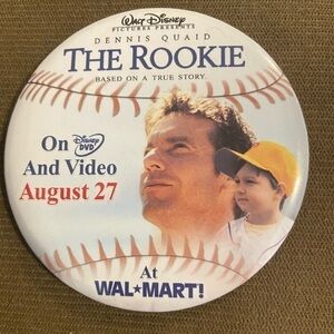 Walt Disney The Rookie Dennis Quaid Advertisement Pin Button Movie WalMart 3x3