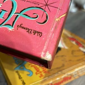 Some handwriting on inside cover page of 1 of the books. Some discoloration of pages due to age. Some wear on cover edges. Shown in pictures. Protective plastic film peeling on bound edge. Otherwise good preowned vintage condition.
