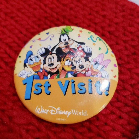 Walt Disney World 1st Visit Pin-Back Button Mickey and Friends Brooch Collection. Condition is "Used". Shipped with USPS First Class.