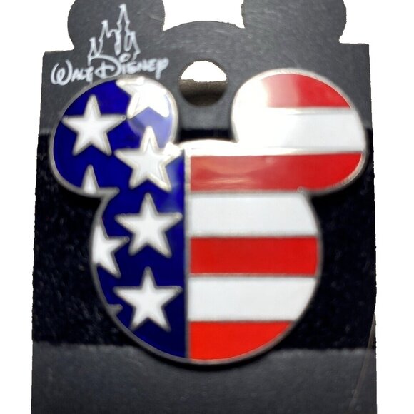 Walt Disney World 2002 Mickey Mouse Pin Badge USA American Flag July 4th Vintage