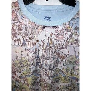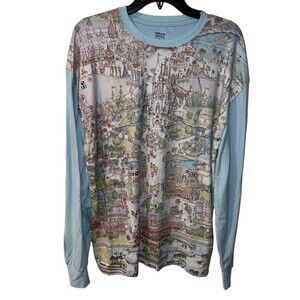 Celebrate the magic of Walt Disney World and the 50th anniversary with this long sleeve T-shirt. The shirt features a map of the park with all the beloved characters and attractions. Show your love for Disney with this collectible T-shirt, available in a size S for adult fans. The shirt is in the iconic blue color associated with the Disney brand, perfect for any Disneyana collector. Don't miss out on this limited edition T-shirt from the franchise that has been delighting fans for decades.