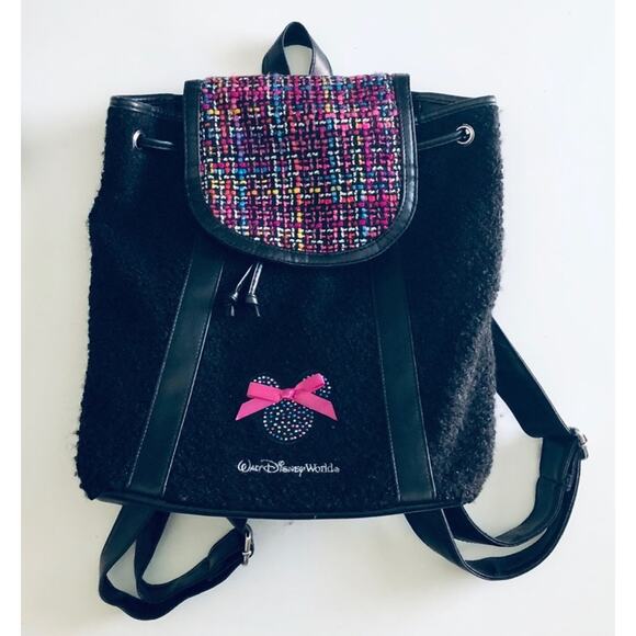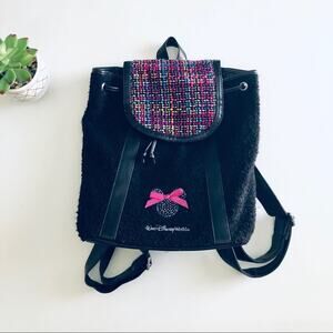 Walt Disney World Boucle Mouse Ears Backpack Pink Black Tweed Rhinestone Bow