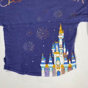 Walt Disney World 50th Anniversary Cast Member Spirit Jersey Magical Castle Fireworks Blue Crewneck Pullover Sweatshirt.