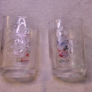 Walt Disney World Epcot & Animal Kingdom 100 year celebration 2000 Mickey McDonald Glass's set of 2 4.75 in tall 3 in wide -1 of each Animal Kingdom and Epcot