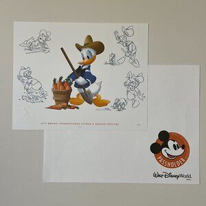 Walt Disney World Epcot Flower & Garden Festival Sketch Illustration Print Set Mickey Goofy Donald 2016