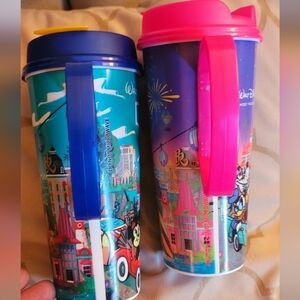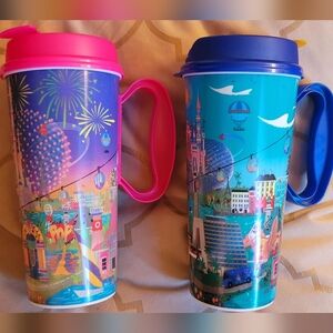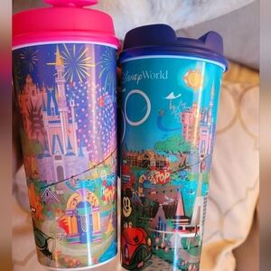 Walt Disney World Insulated Mug Blue 50th Anniv and pink Refillable Resort Mug
